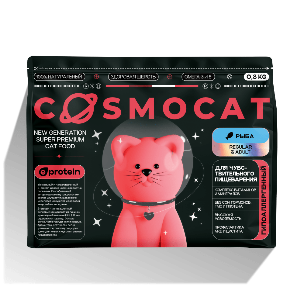 Купить Сухой корм COSMOCAT для взрослых кошек, полнорационный, рыба, 0.8 кг в Москве — цена и доставка | Cosmopet