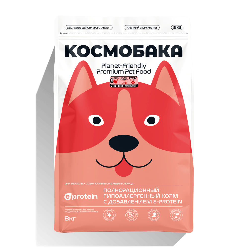 Полнорационный сухой корм для собак крупных и средних пород Космобака с высокой усвояемостью разработан для поддержания здоровья и энергии вашего питомца. В состав корма входит энтопротеин с полной цепочкой аминокислот, мясо индейки и пробиотики, которые способствуют улучшению пищеварения и укрепляют иммунную систему.