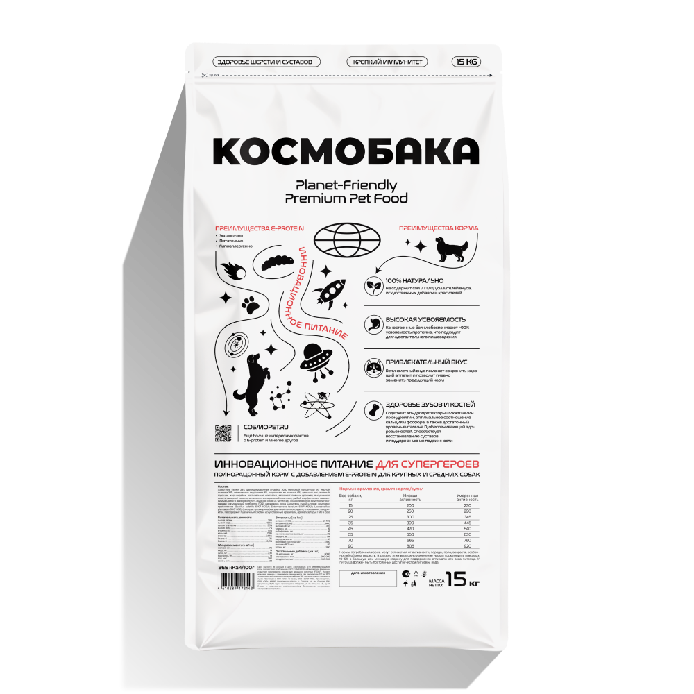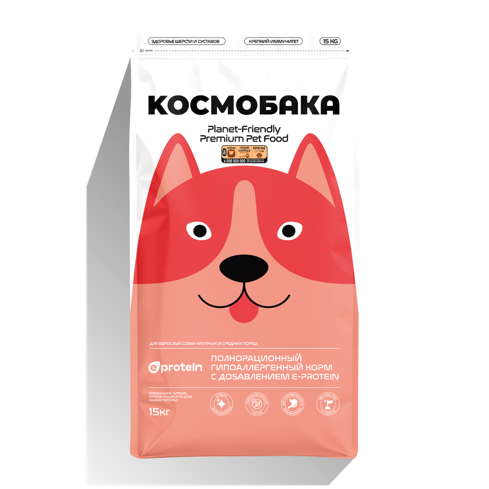 Полнорационный сухой корм для собак крупных и средних пород Космобака с высокой усвояемостью разработан для поддержания здоровья и энергии вашего питомца. В состав корма входит энтопротеин с полной цепочкой аминокислот, мясо ягненка и пробиотики, которые способствуют улучшению пищеварения и укрепляют иммунную систему.