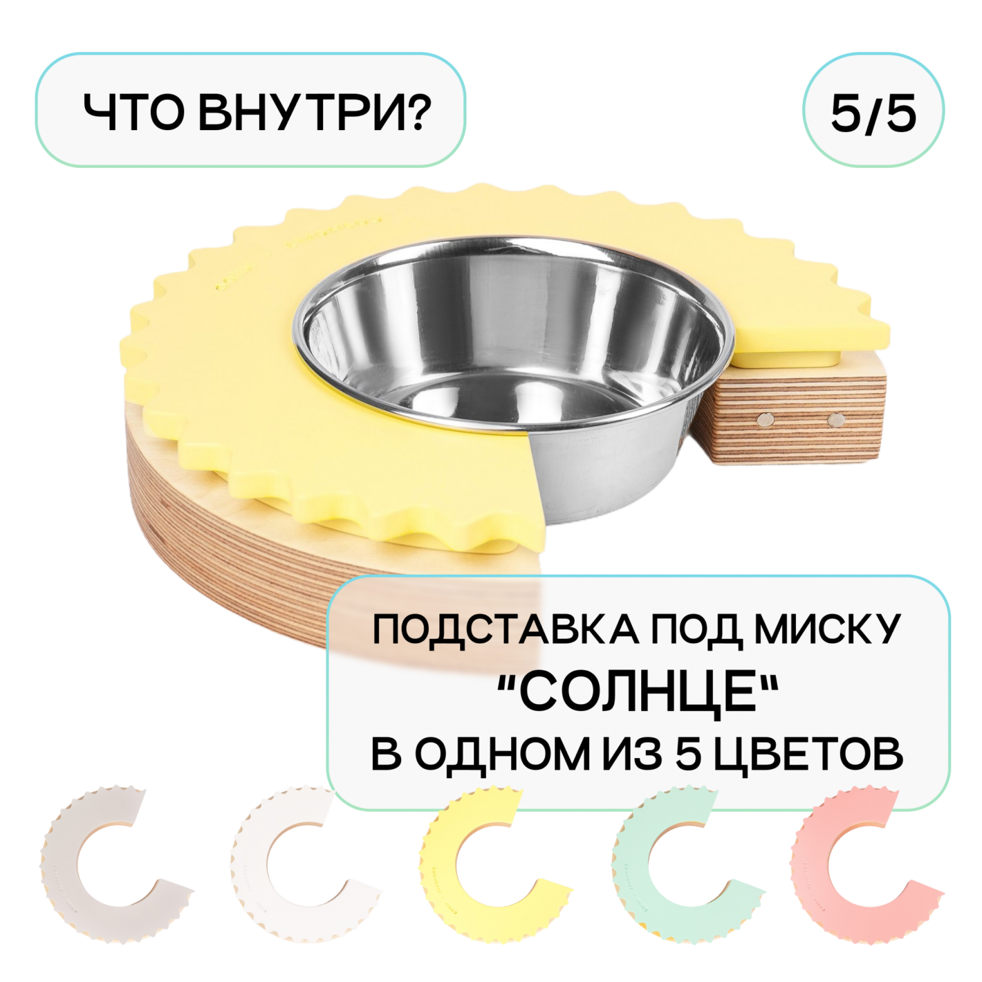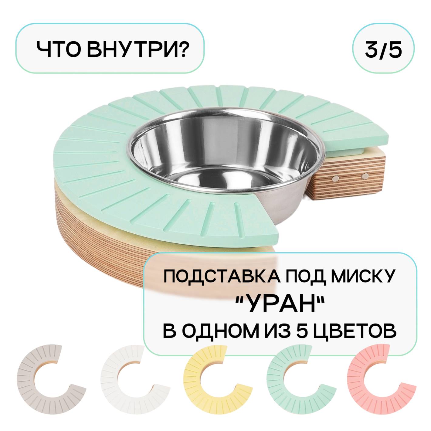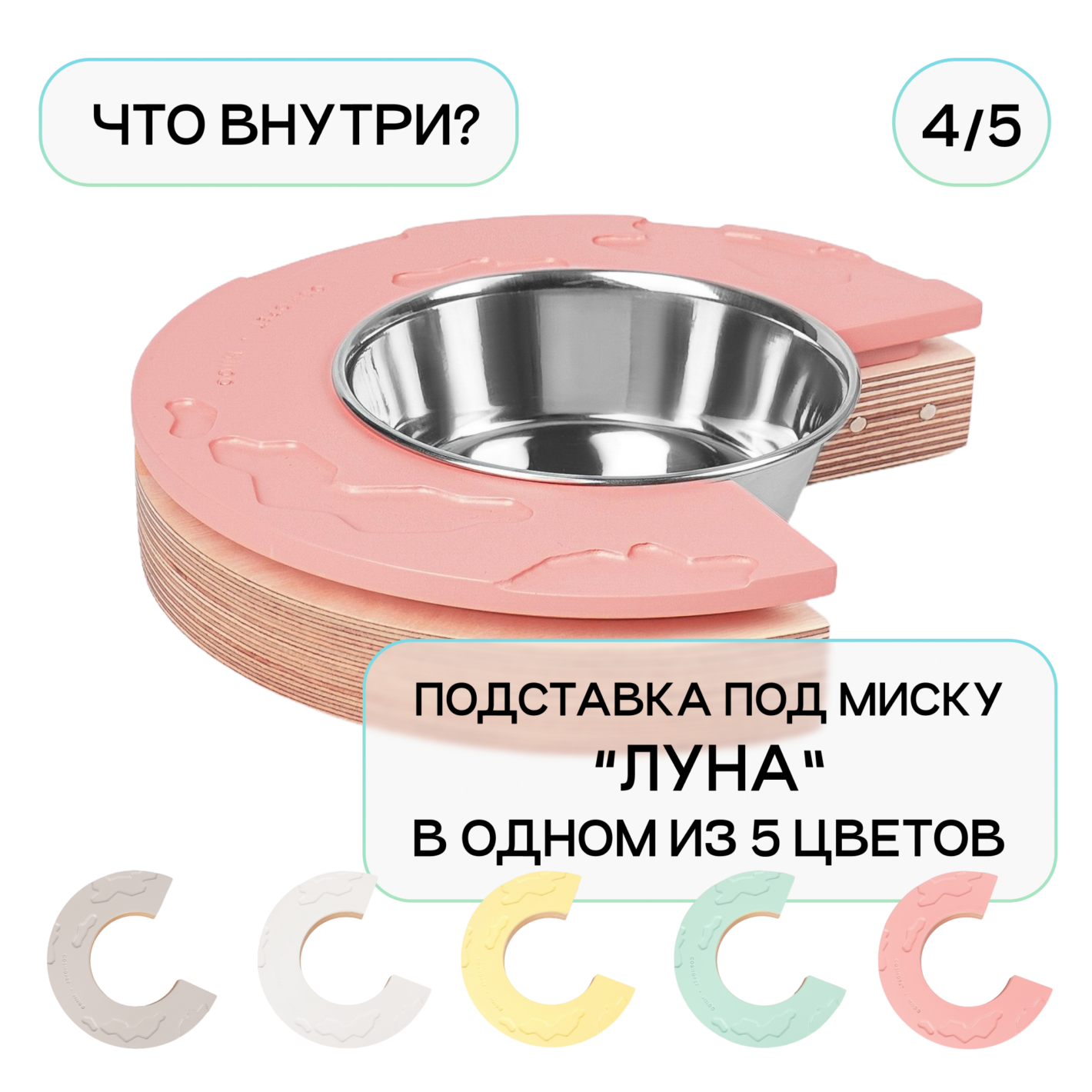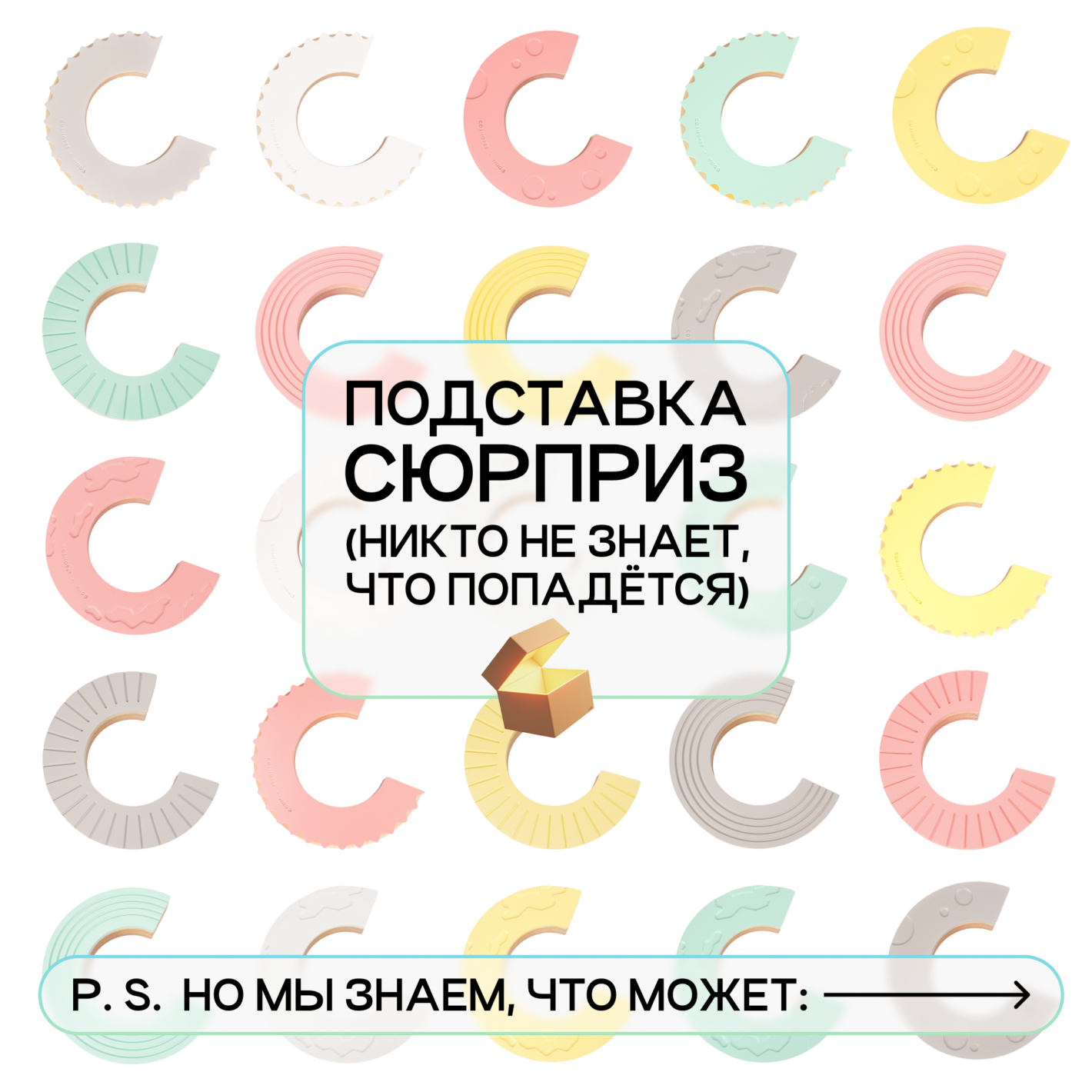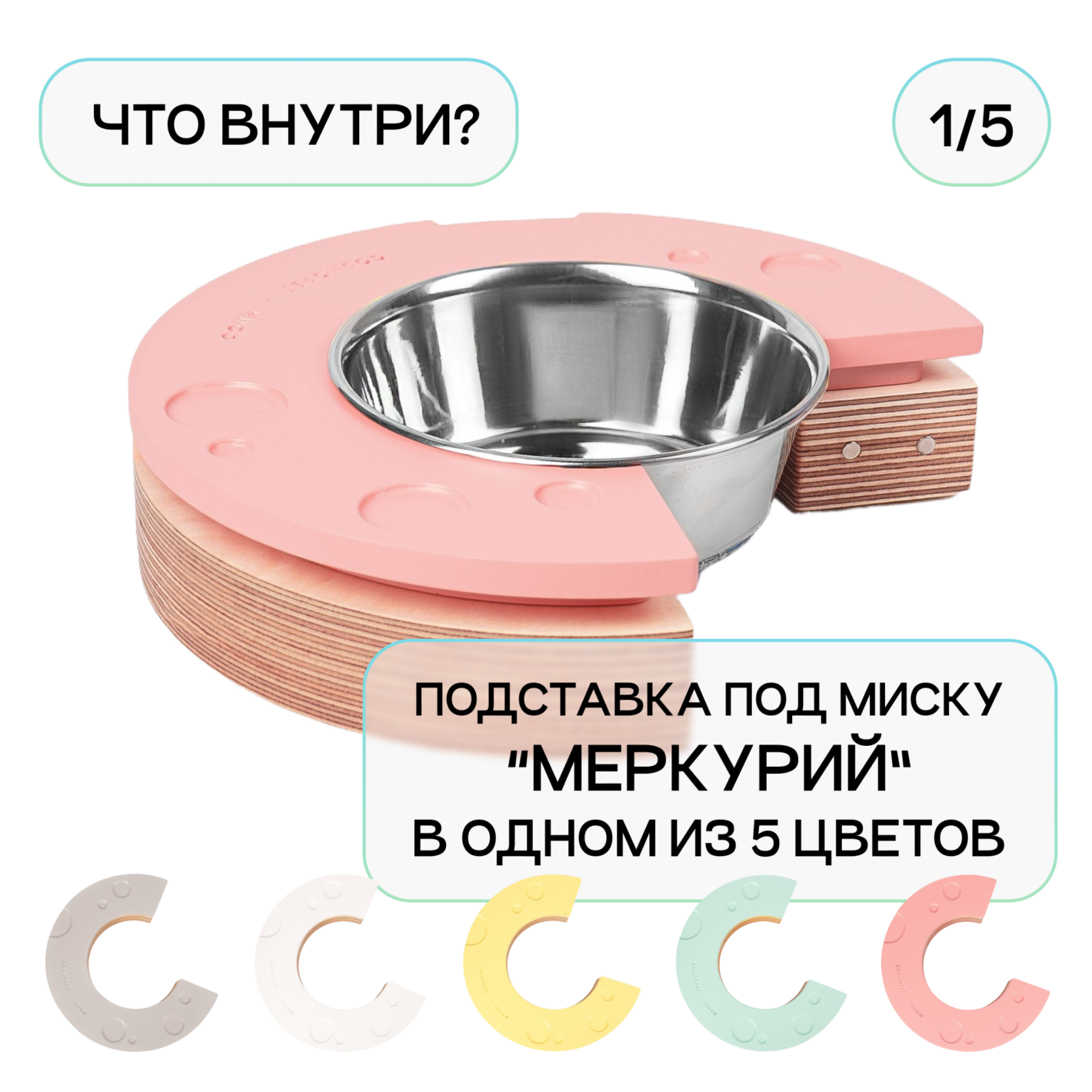 Поверхность каждой подставки имитирует поверхность 5 планет: Солнца, Луны, Урана, Меркурия и Сатурна, выполнена в одном из 5 цветов: солнечный желтый, лунный серый, уранианский голубой, венерианский белый и розовый, как загадочная планета GJ 504b. Какая подставка попадется вам — знают только звезды!