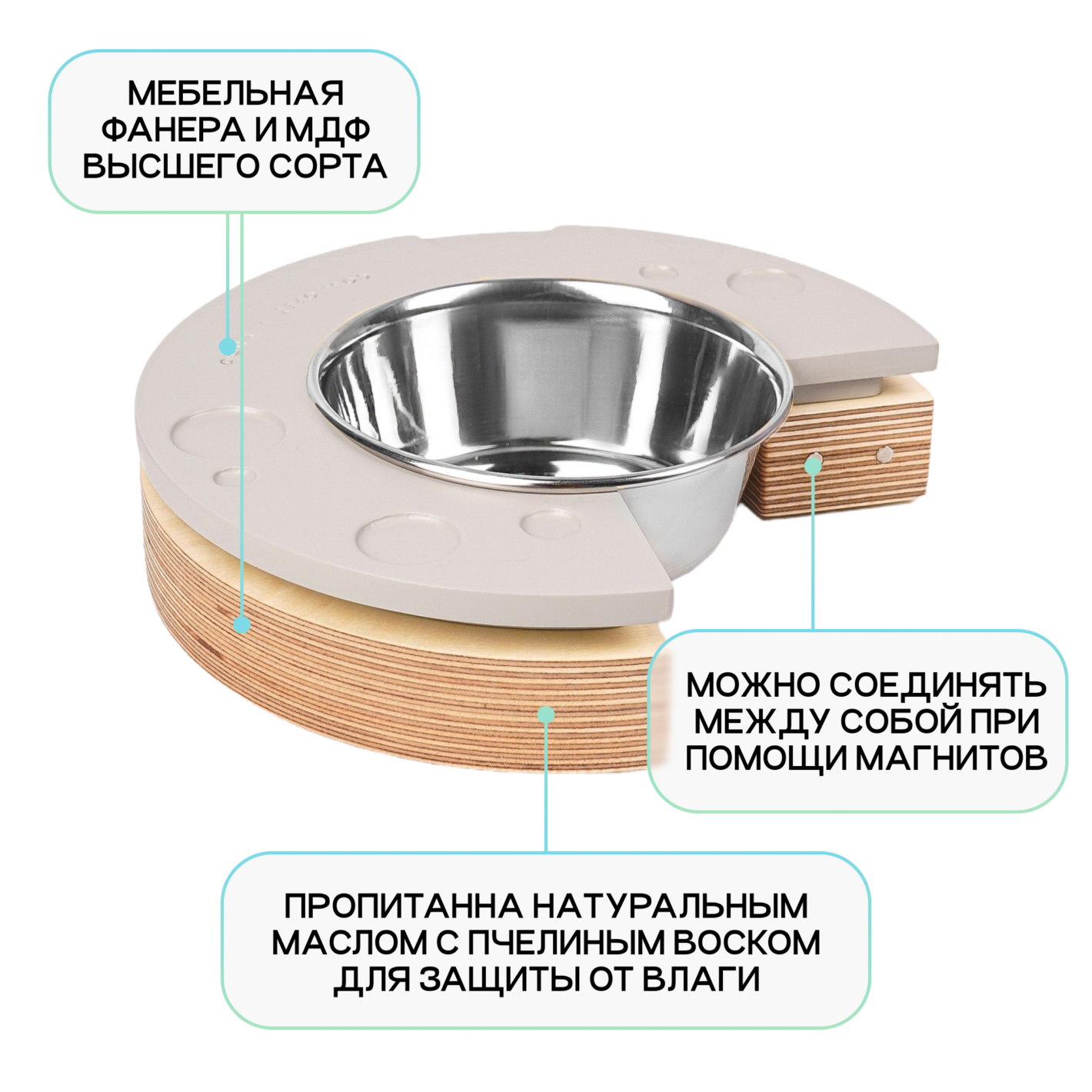 В комплекте идут утяжеленные миски из нержавеющей стали.