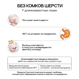 Сухой корм COSMOCAT для выведения шерсти создан для заботы о здоровье и комфорте вашей кошки.