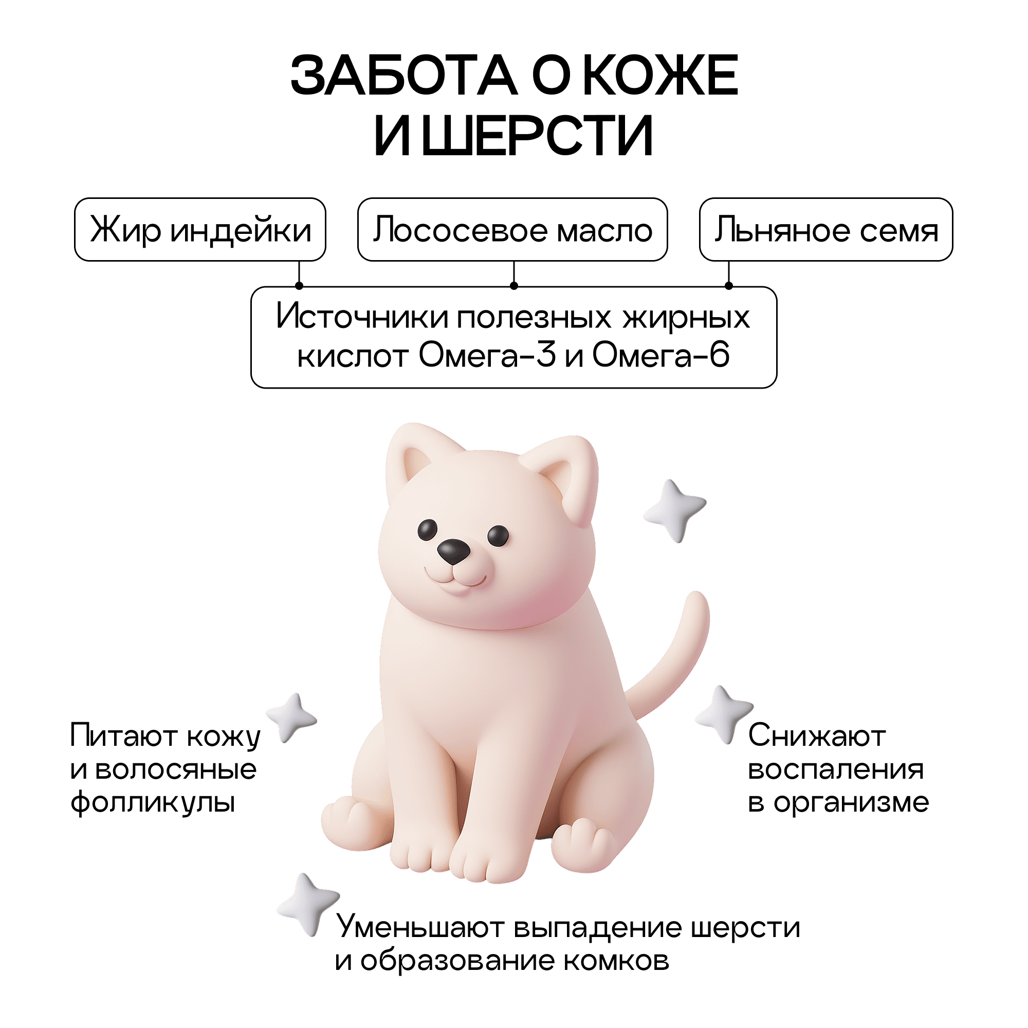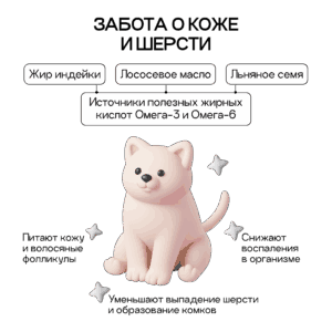 Формула с повышенным содержанием клетчатки мягко помогает выводить шерсть естественным образом, снижая риск образования комков.